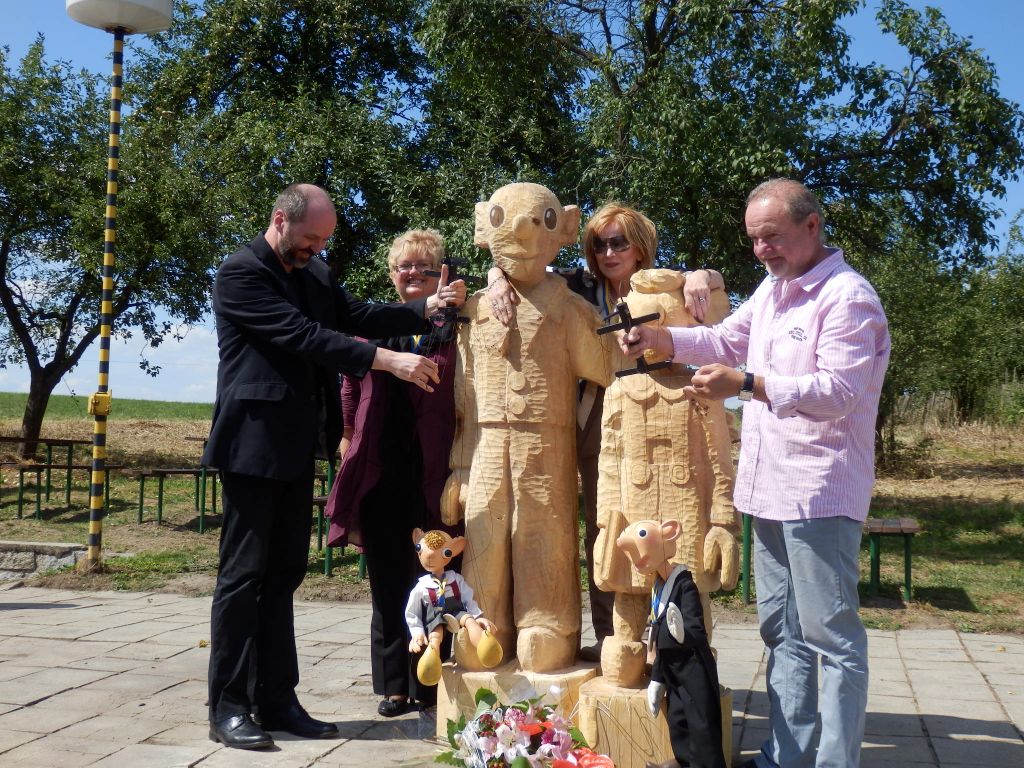 Odhalené sochy Spejbla a Hurvínka