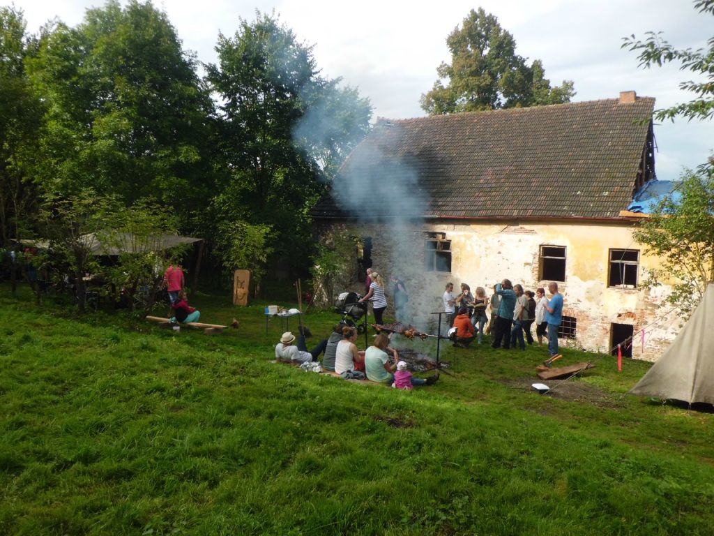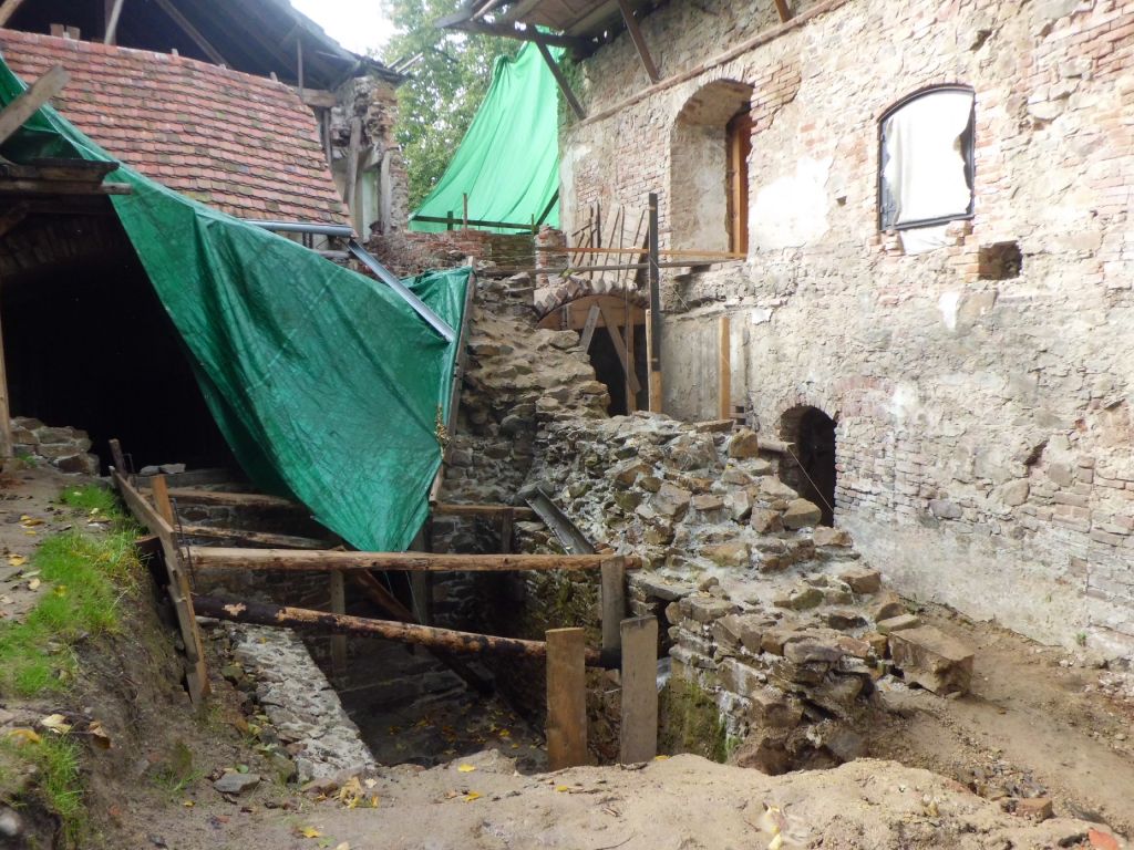 Tvrz v Mladějovicích ve fázi oprav. Zde se uskutečnilo dětské odpoledne.