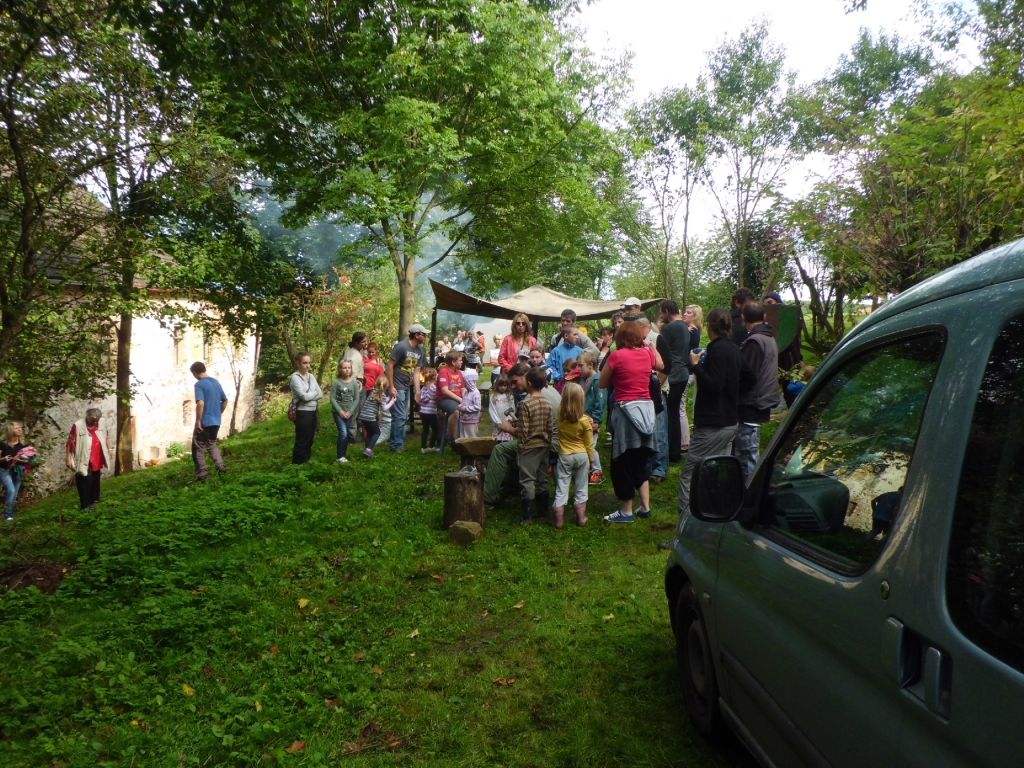 Účastníci na stanovišti za tvrzí.