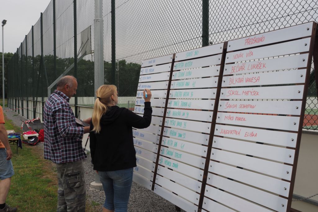Připínání vylosovaných startovních čísel