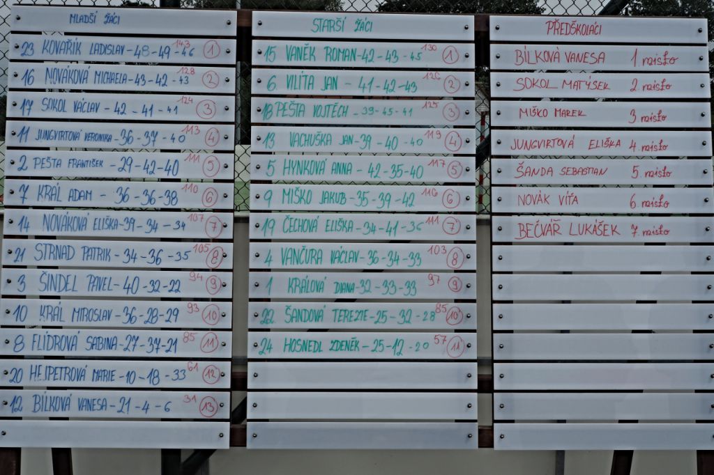Soutěžilo se v kategoriích starší a mladší žáci a předškoláci