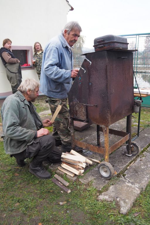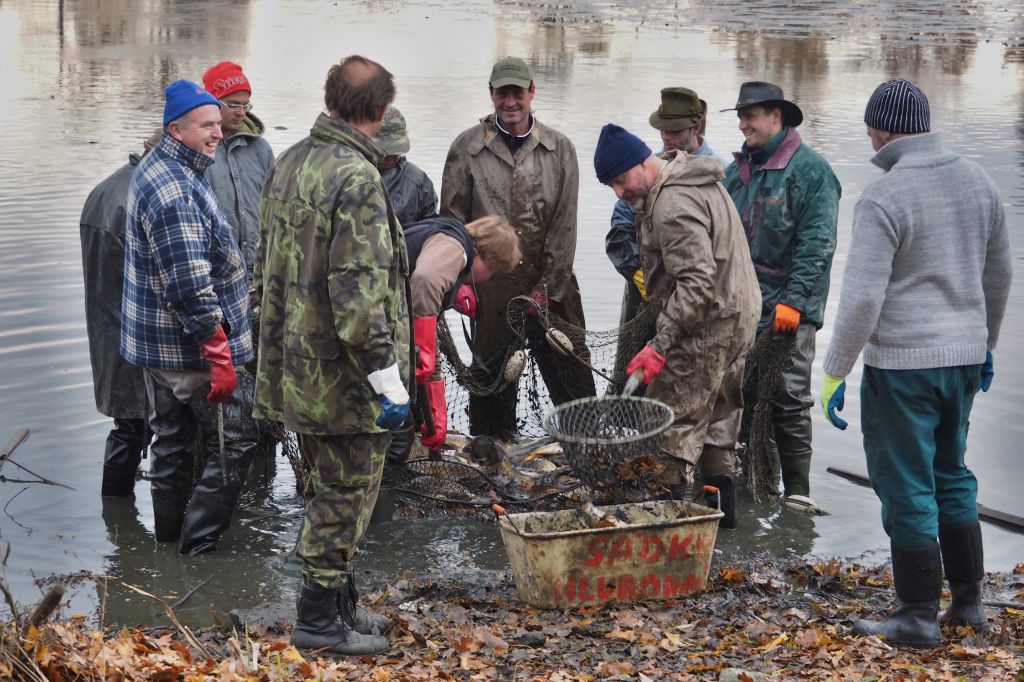 Namáhavá práce v rozvířené vodě obecního rybníka
