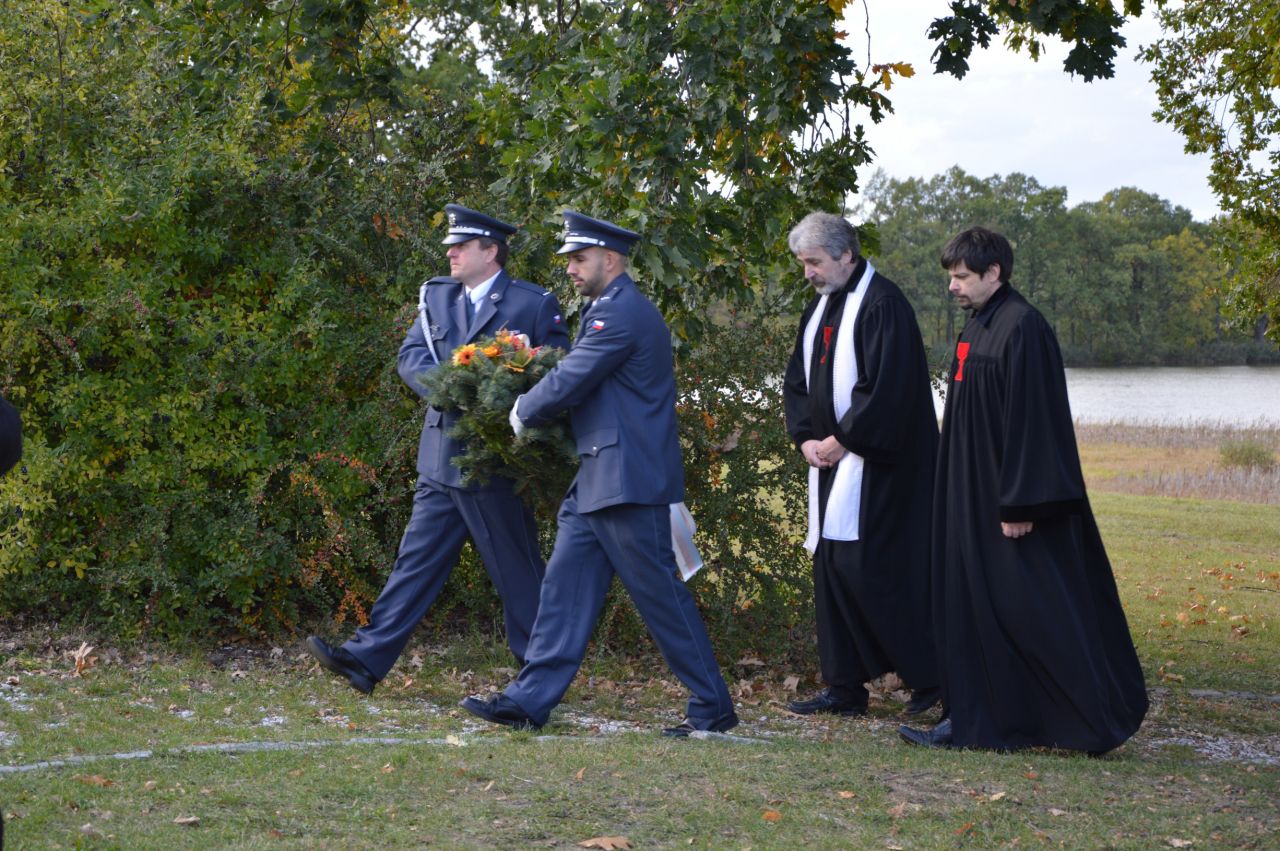 Zástupci obcí a CČSH u památníku v Sudoměři