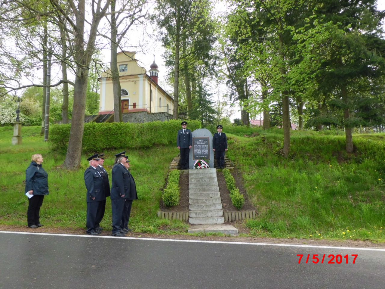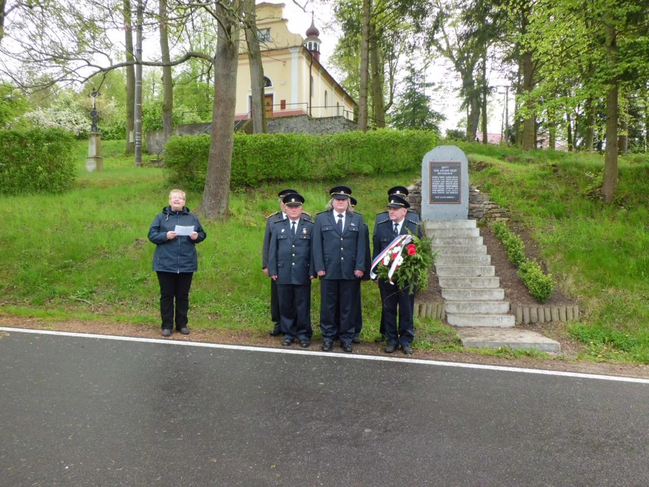 Mladějovičtí hasiči pokládají věnce k pomníku padlých