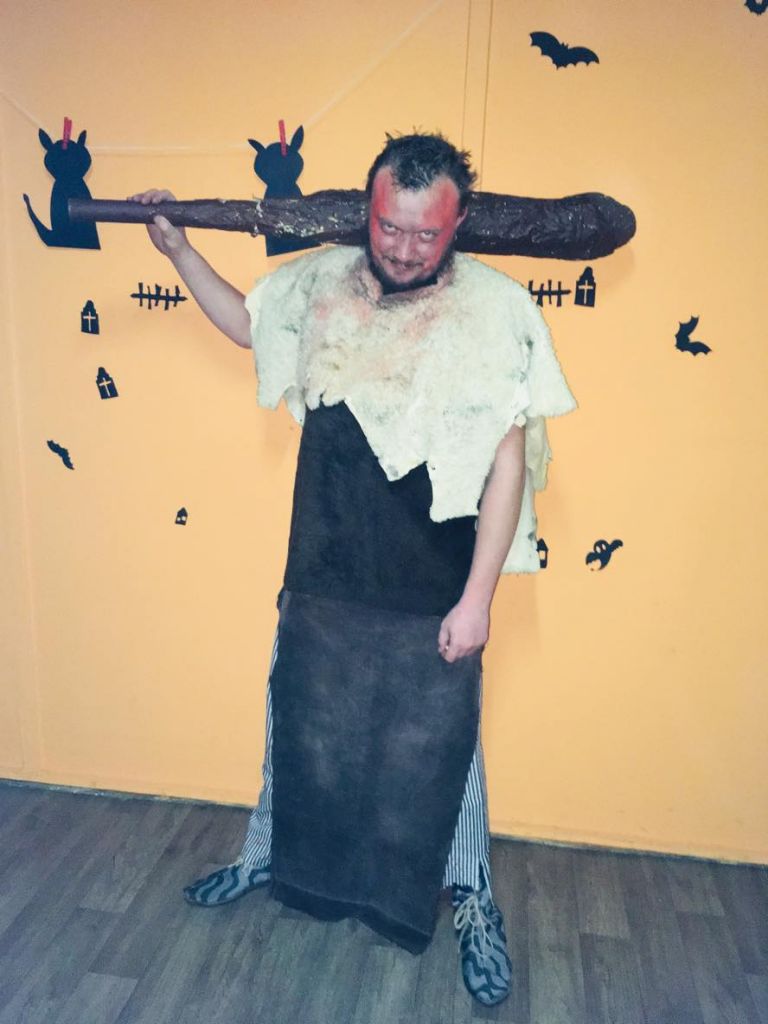 Originální maska s mohutným kyjem