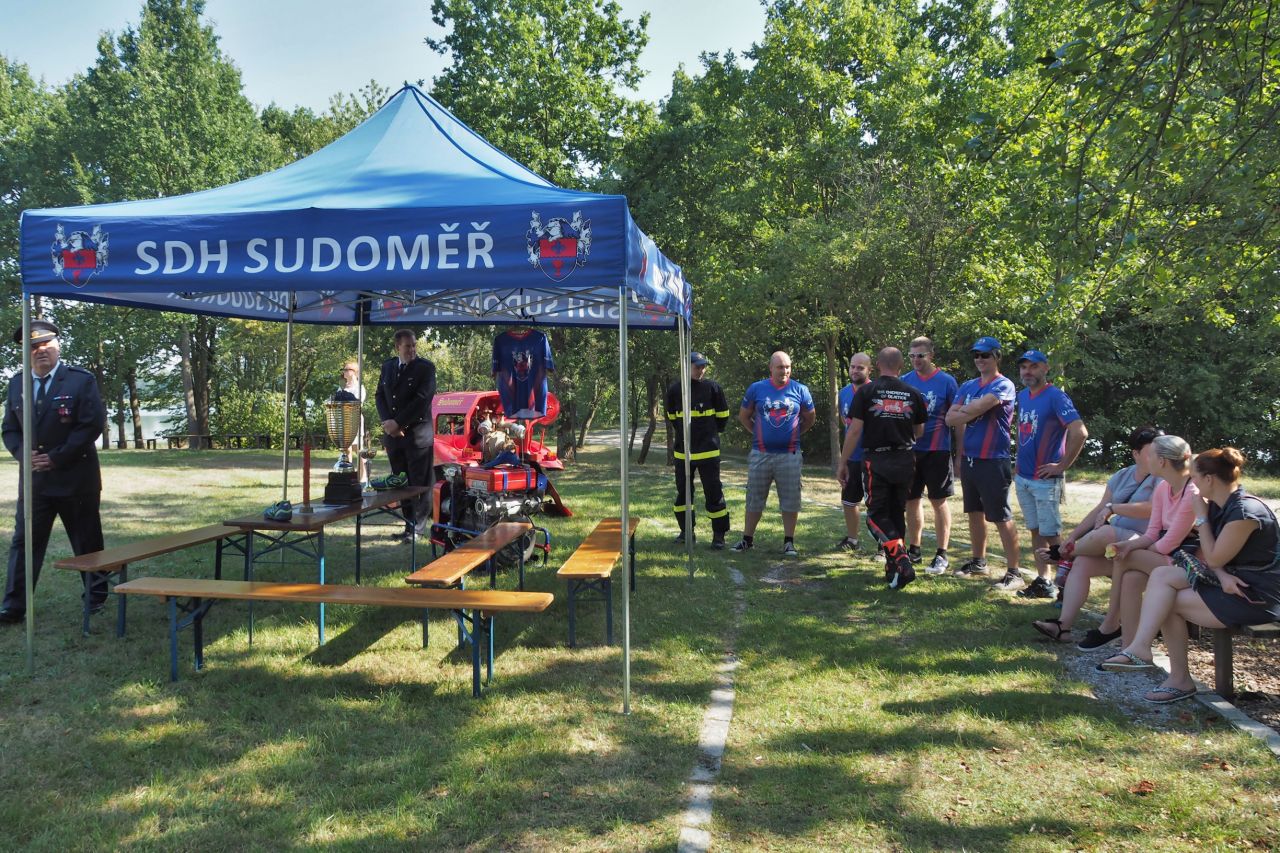Sudoměřští hasiči u svého stanu