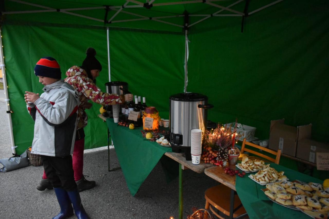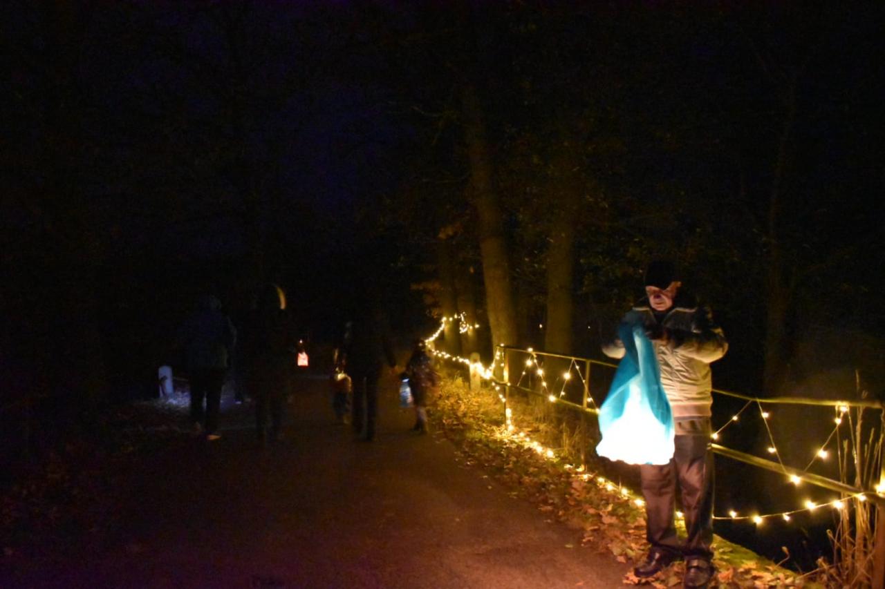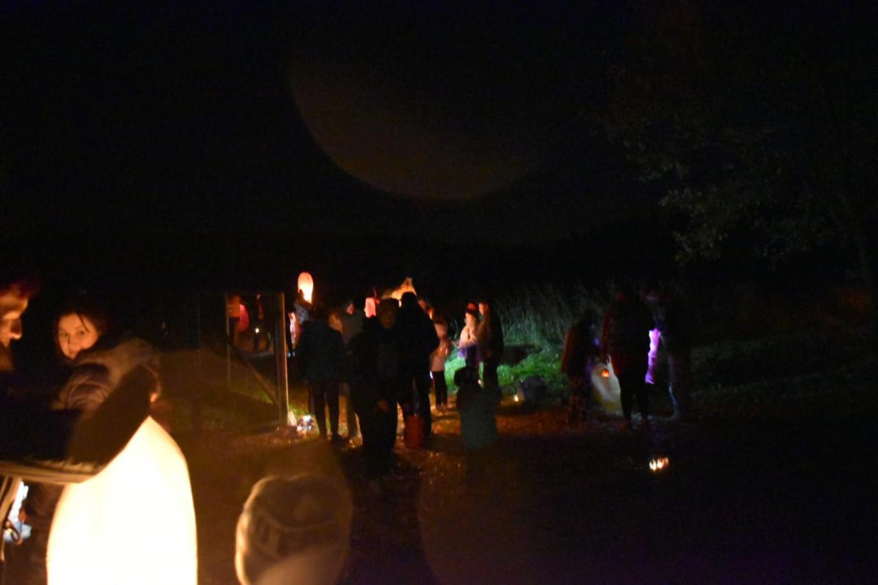 Poslední účastníci průvodu procházejí osvětlenou vsí