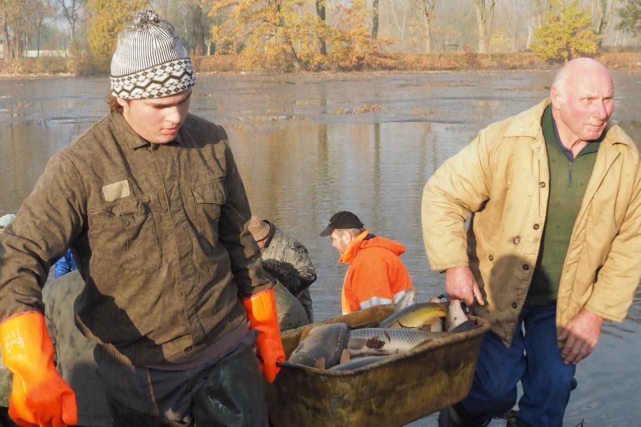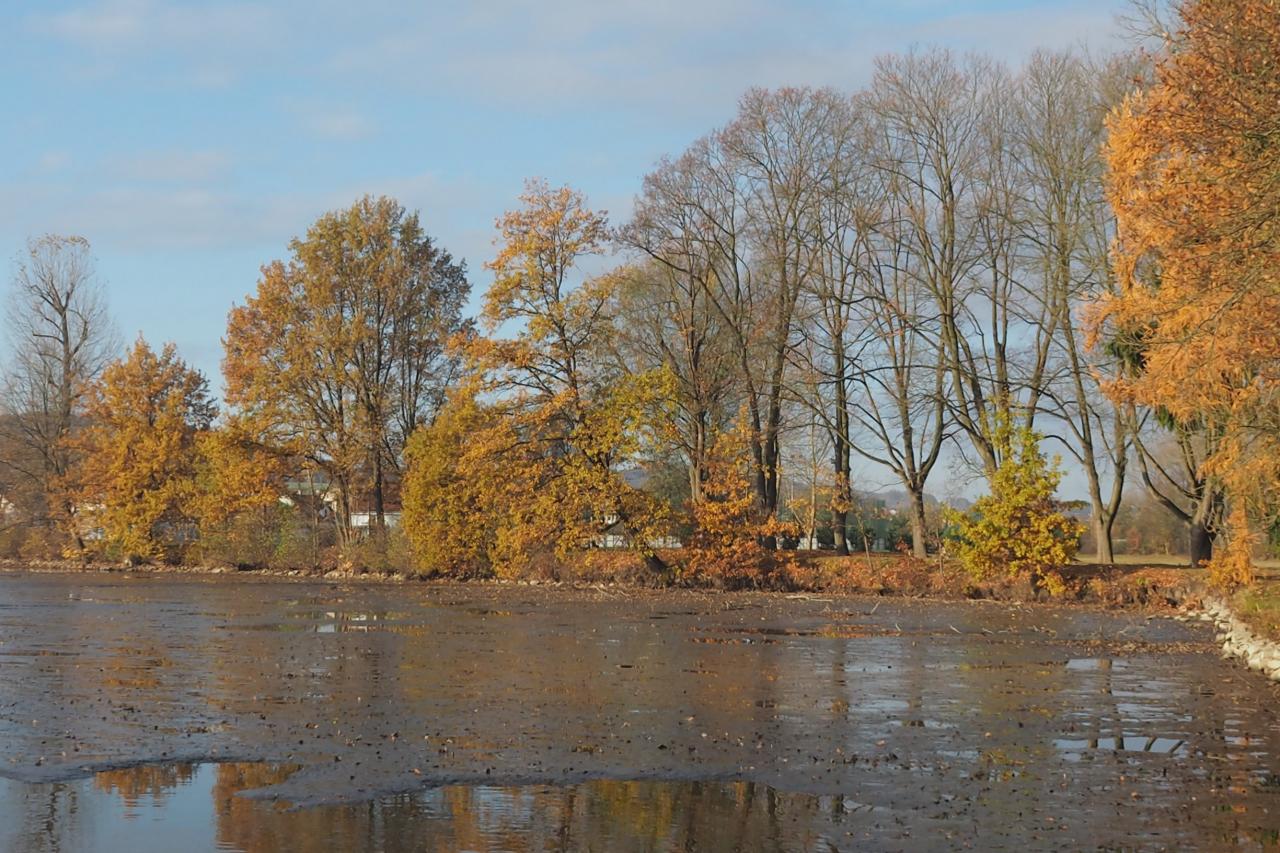Nezvyklý pohled na vypuštěný rybník za krásného podzimního dne
