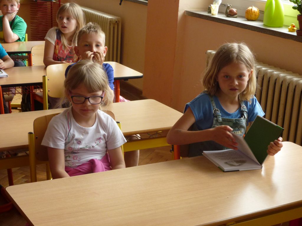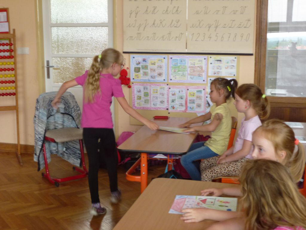 V první třídě nás čekal pestrý program i dárečky - obrázky od školáků.