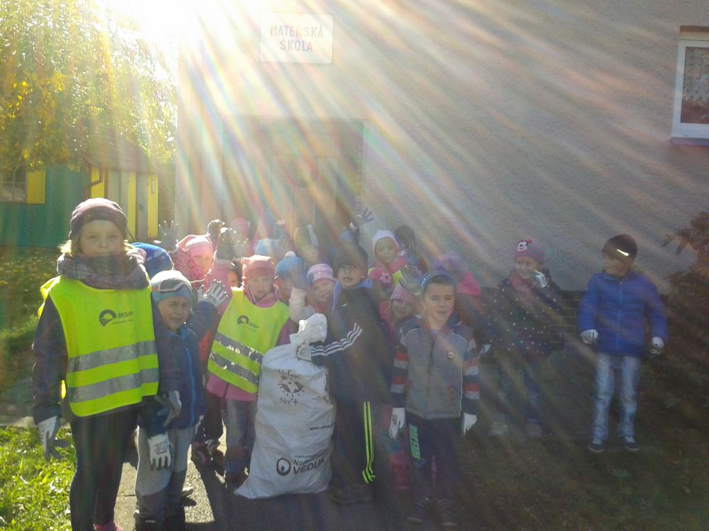 Naše mateřská škola se i letos zapojila do ekologického projektu "Ukliďme Svět". Nejprve jsme si společně na třídách povídali o naší planetě a o tom, co naší přírodě škodí a jak jí můžeme pomoci, aby byla krásná a čistá. ... a pak hurá ven. Děti opravdu měly oči jak na "šťopkách" a odpadků našly plný pytel.