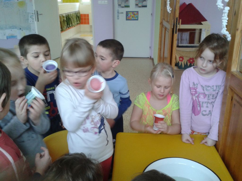 Venku v přírodě nám zima svou sílu a kouzla příliš neodhalila a tak jsme kouzlili přímo ve třídě. Trochu jsme si pohráli s barevnou vodou. Už víme, co je tání a naopak, jak se z vody stane tuhý studený led.