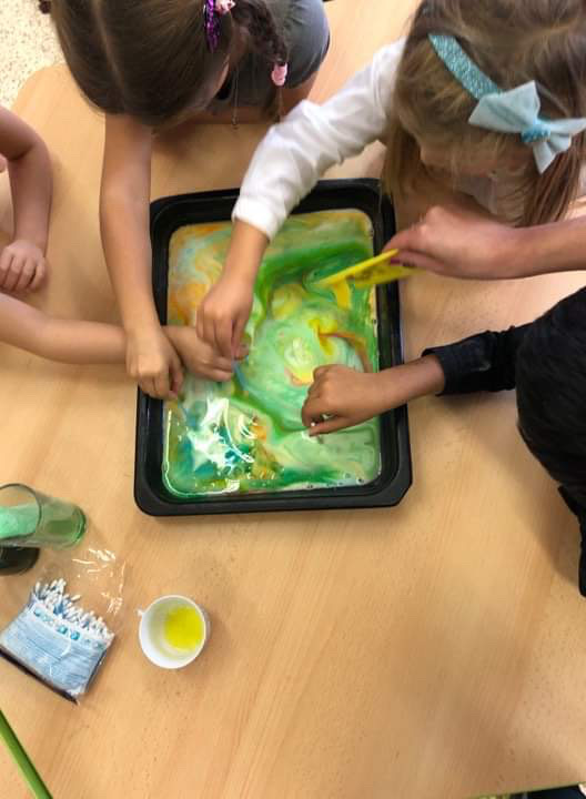 Každý čtvrtek něco objevujeme. Podívejte se, jak jsme vytvořili mramorové mléko a nebo vyrobili zobání pro ptáčky z šišky :)
