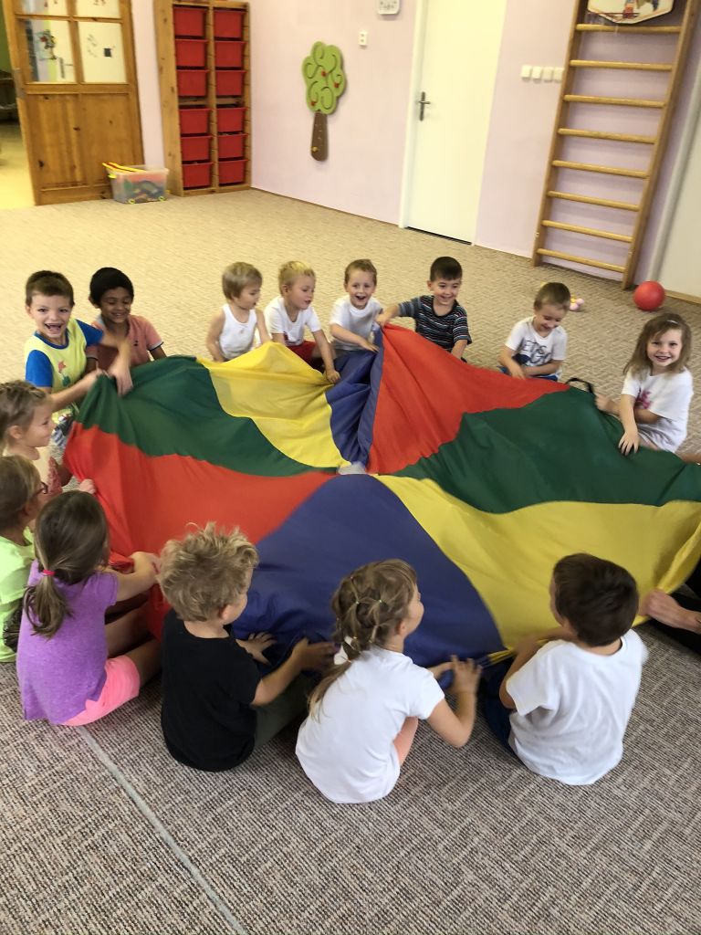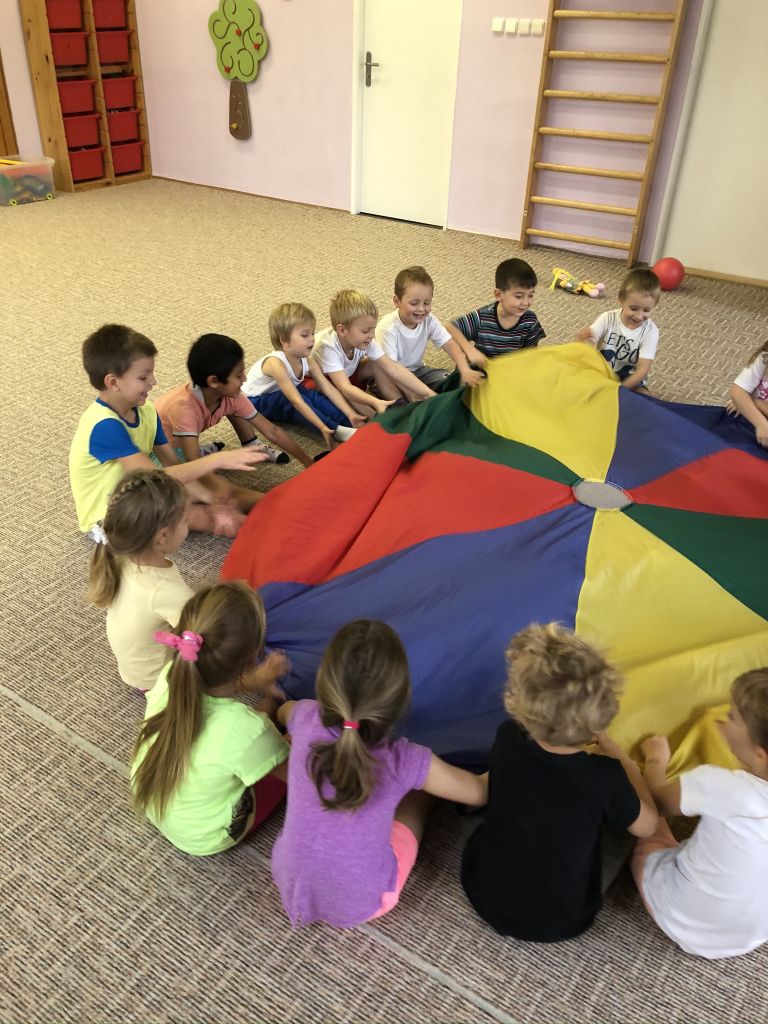 V říjnu u nás byla paní, která s námi cvičí. Má k tomu spoustu básniček a také barevný padák, který nás moc baví.