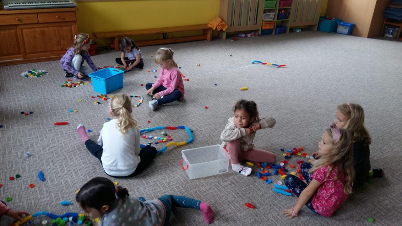 Pečení a zdobení hnětýnek, posezení, tvoření z víček a stavebnic. Procházka venku - objevování přírody.