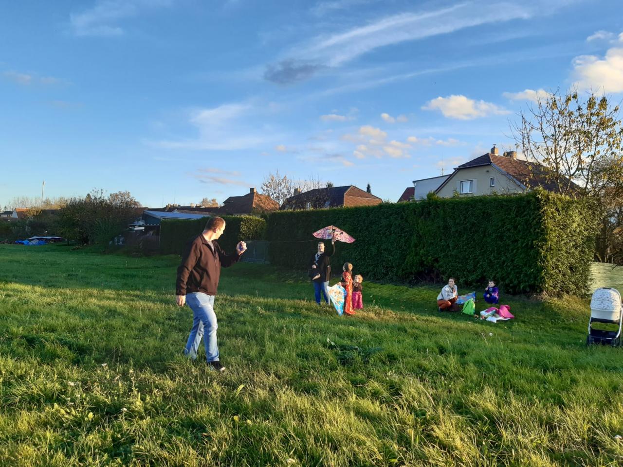 Tvoření na zahradě MŠ, dobroty, zamykání zahrady a pouštění draků