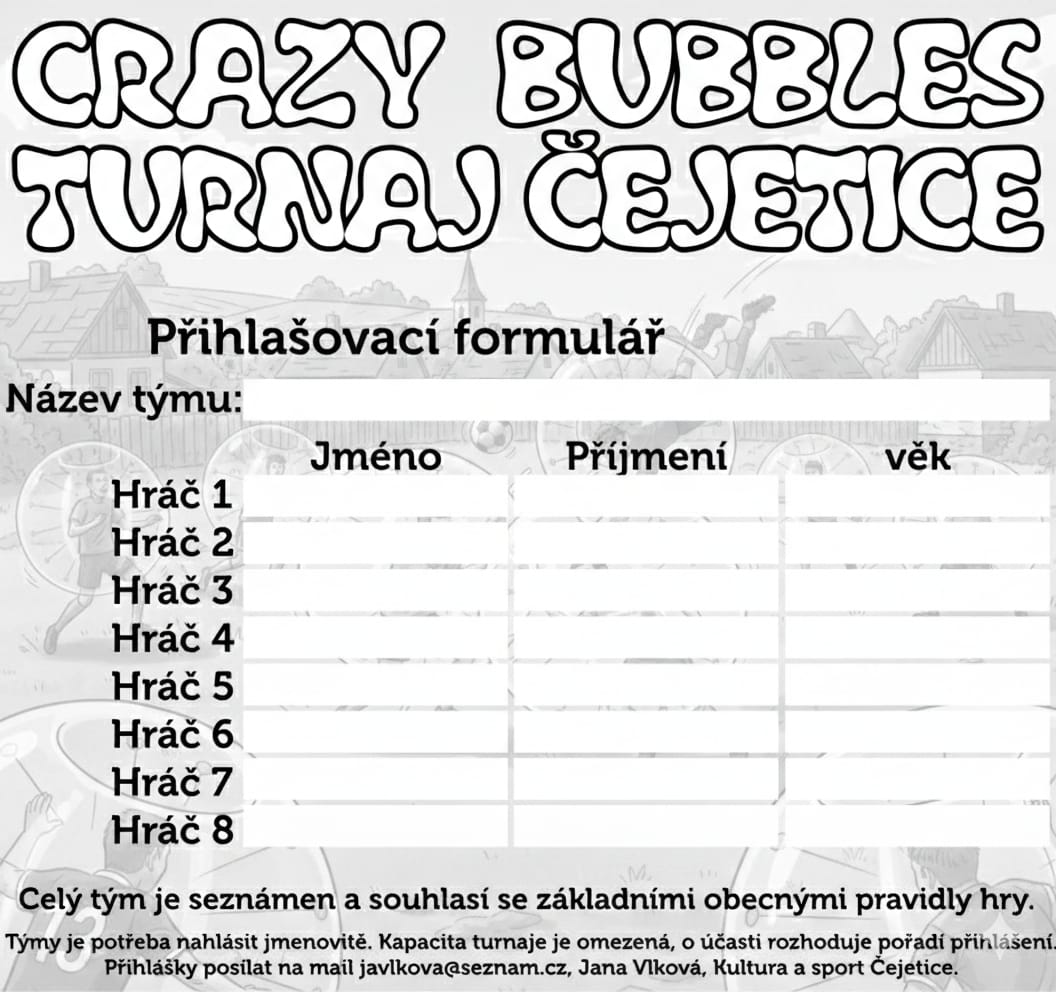 Přihláška na turnaj Crazy Bubbles